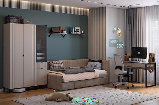 Набор детской мебели "Мебельсон К1" (кашемир/фрапучино матовый/черный/капучино (велюр))