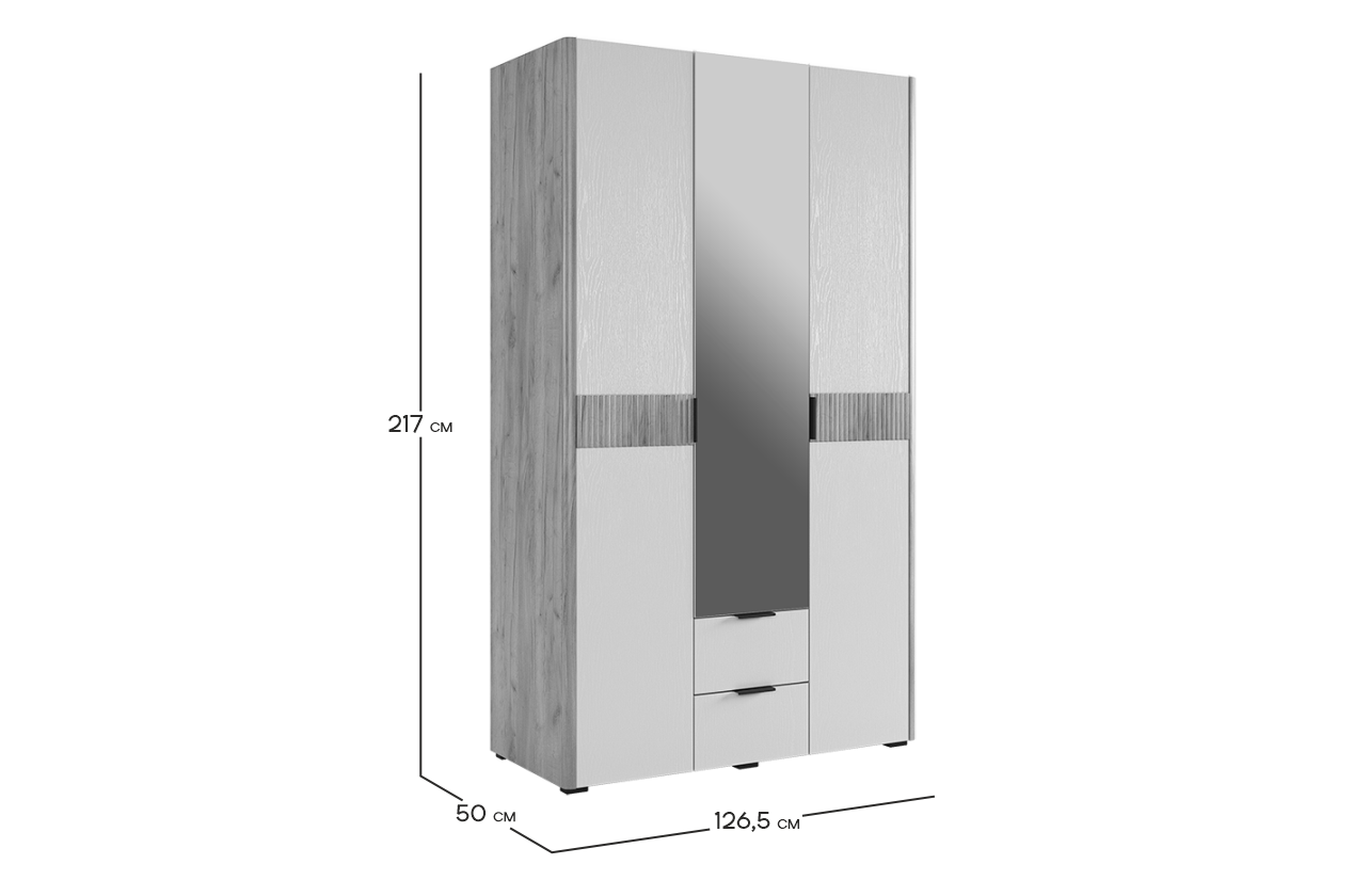 Адам Шкаф трехдверный (зеркало) дуб крафт золотой/белое дерево из каталога Шкафы купить в Ижевске в магазине мебели онлайн Мебельсон по цене 42 290 ₽