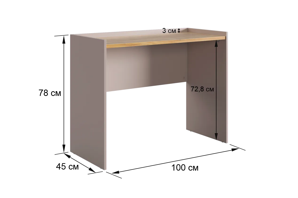 Корпус стола выполнен в цвете кашемир, что придает ему современный и спокойный вид, легко сочетающийся с любым интерьером. Столешница изготовлена из высококачественного материала цвета дуб крафт золотой с толщиной 22 мм, что обеспечивает прочность и устойчивость к повреждениям. Этот цвет добавляет столу теплоту и роскошь, создавая приятное ощущение при работе или учебе.