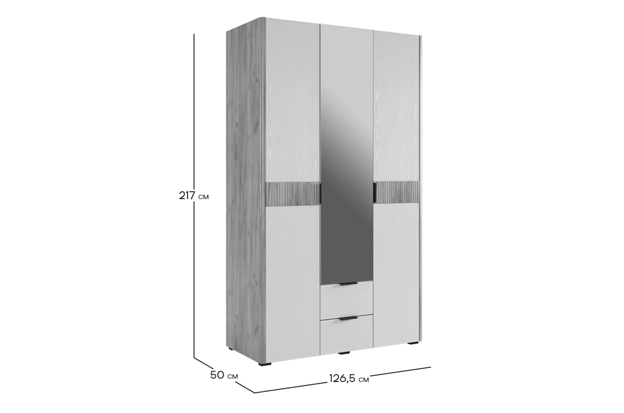 Адам Шкаф трехдверный (зеркало) дуб крафт золотой/белое дерево из каталога Шкафы купить в Ижевске в магазине мебели онлайн Мебельсон по цене 42 290 ₽