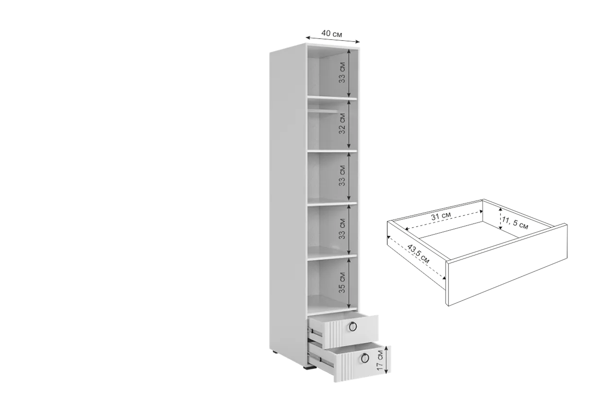 Гибкость и функциональность - еще две характеристики, которые делают Ева шкаф однодверный 101.01 особенным. Он оснащен одной секцией со штангой и дополнительными полками, которые можно легко менять. Вы можете использовать полки для складирования своих вещей или убрать их, чтобы повесить одежду на штангу. Кроме того, присутствие двух выдвижных ящиков на шариковых направляющих дает вам возможность удобно хранить мелкие предметы.