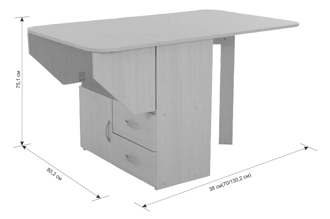 Стол-тумба раскладной: Это изделие сочетает в себе практичность и элегантность. В роли тумбы она предлагает обширные отделения, идеально подходящие для хранения различных предметов - начиная от мелочей и заканчивая обувью. Главная особенность - инновационный механизм, который позволяет превратить верх тумбы в просторный стол. Высший класс для тех, кто ищет гармонию удобства и стиля в интерьере. В полностью раскладном виде, ширина стола достигает 1300 мм.