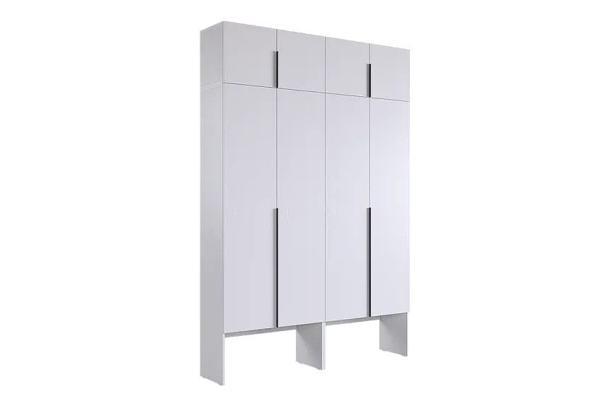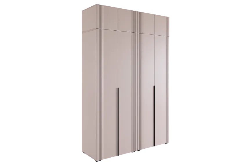 Угловой распашной шкаф — еще один вариант, позволяющий максимально использовать пространство, особенно в помещениях необычной формы. Угловой шкаф позволяет эффективно использовать каждый угол, предлагая при этом большие возможности для хранения вещей. В зависимости от ваших потребностей вы можете выбрать модель с полками, штангами для одежды или даже встроенными ящиками.