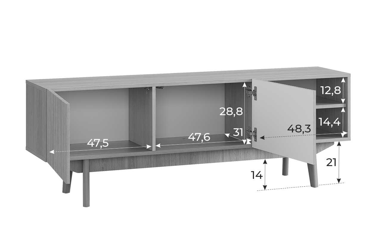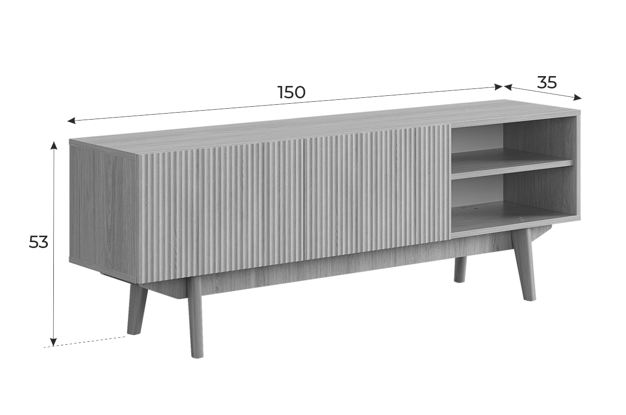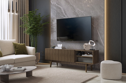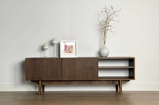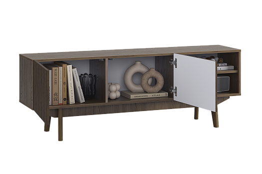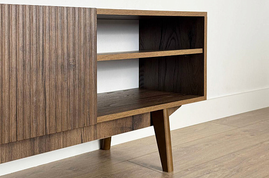 Высокие опоры из массива дерева не только дополняют дизайн тумбы, но и позволяют роботу-пылесосу свободно проходить под ней. Тумба «Мира» 150 станет отличным местом для размещения телевизора и хранения медиатехники.