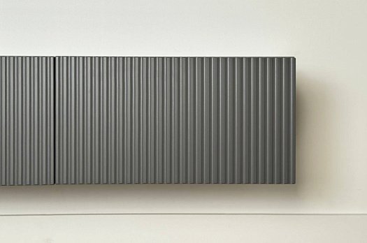 Модель выполнена из ЛДСП класса Е1, фасады изготовлены из МДФ с фрезеровкой и покрыты плёнкой ПВХ. Три дверцы оснащены газлифтами и системой толкателей PUSH, что обеспечивает удобство использования.