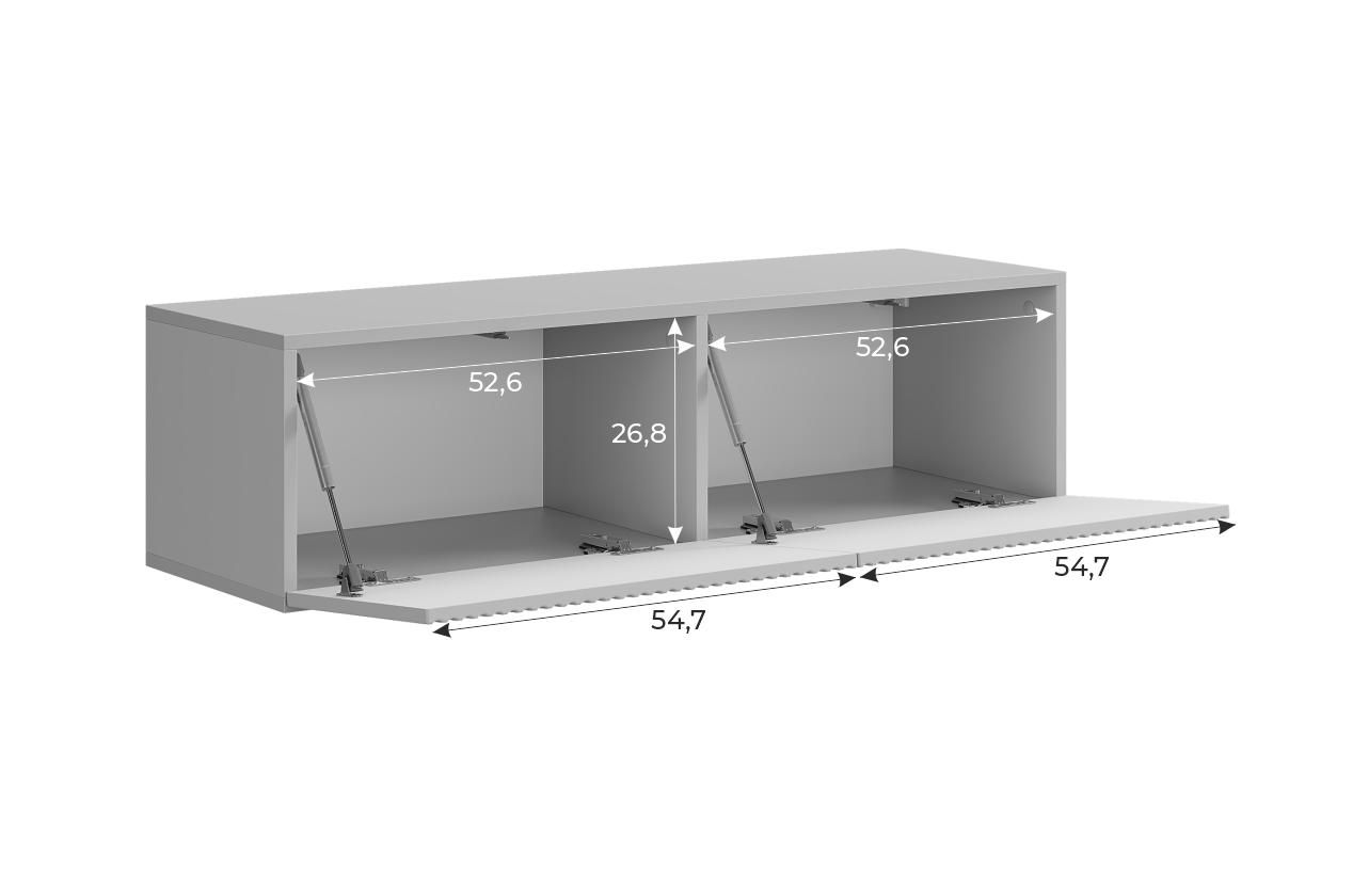 Модель выполнена из ЛДСП класса Е1, фасады изготовлены из МДФ с фрезеровкой и покрыты плёнкой ПВХ. Две дверцы оснащены газлифтами и системой толкателей PUSH, что обеспечивает удобство использования.