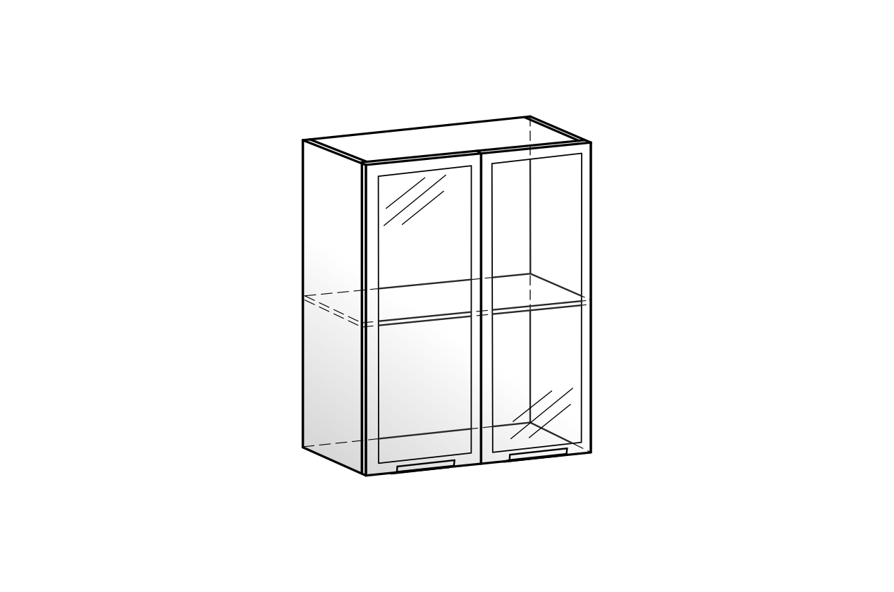 Алюм Шкаф навесной L600 Н720 (2 дв. рам.) белый/белый муар/бесцветное мору из каталога Шкафы навесные купить в Ижевске в магазине мебели онлайн Мебельсон по цене 13 380 ₽