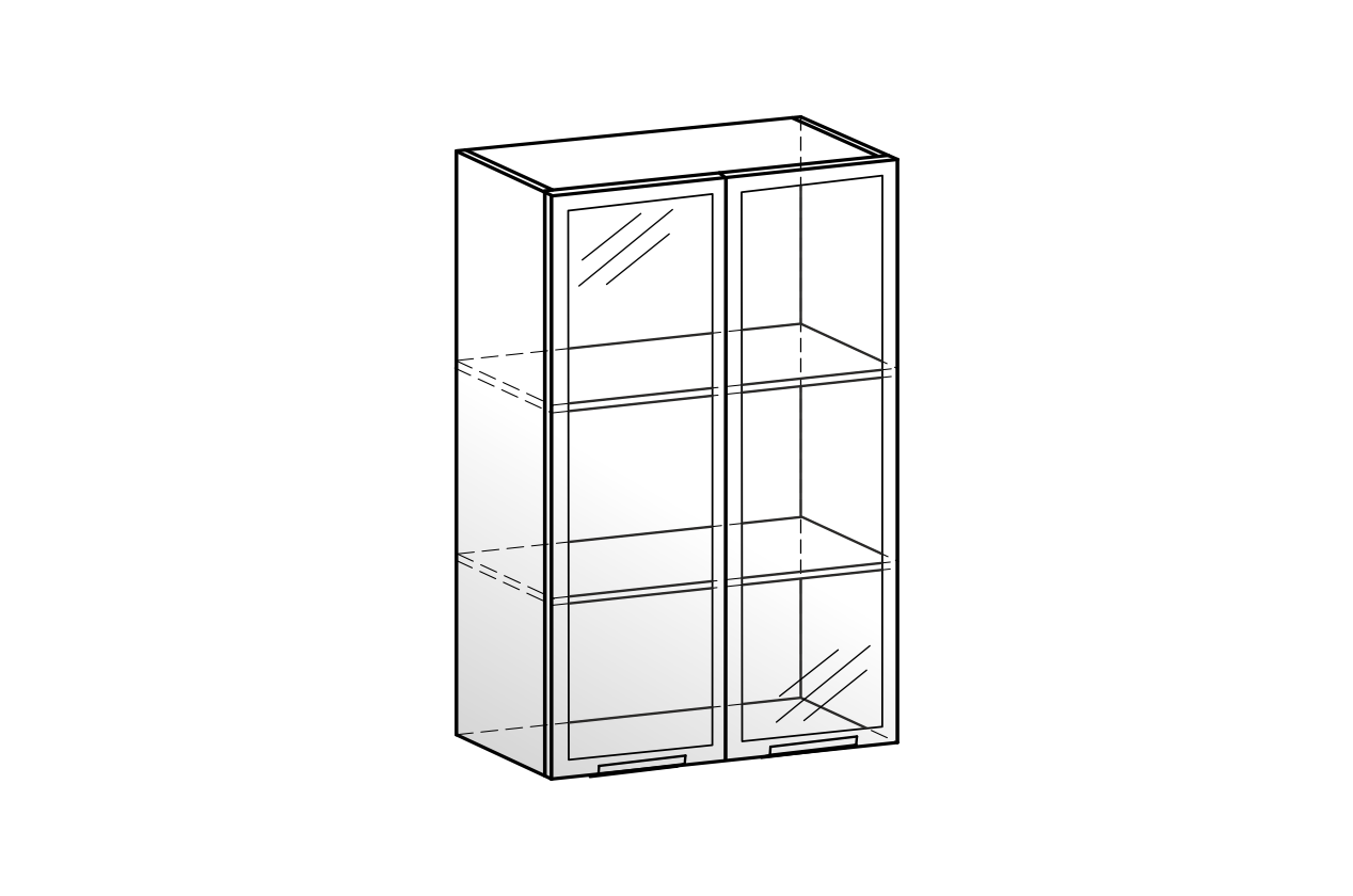 Алюм Шкаф навесной L600 Н900 (2 дв. рам.) (белый/белый муар/бесцветное мору)