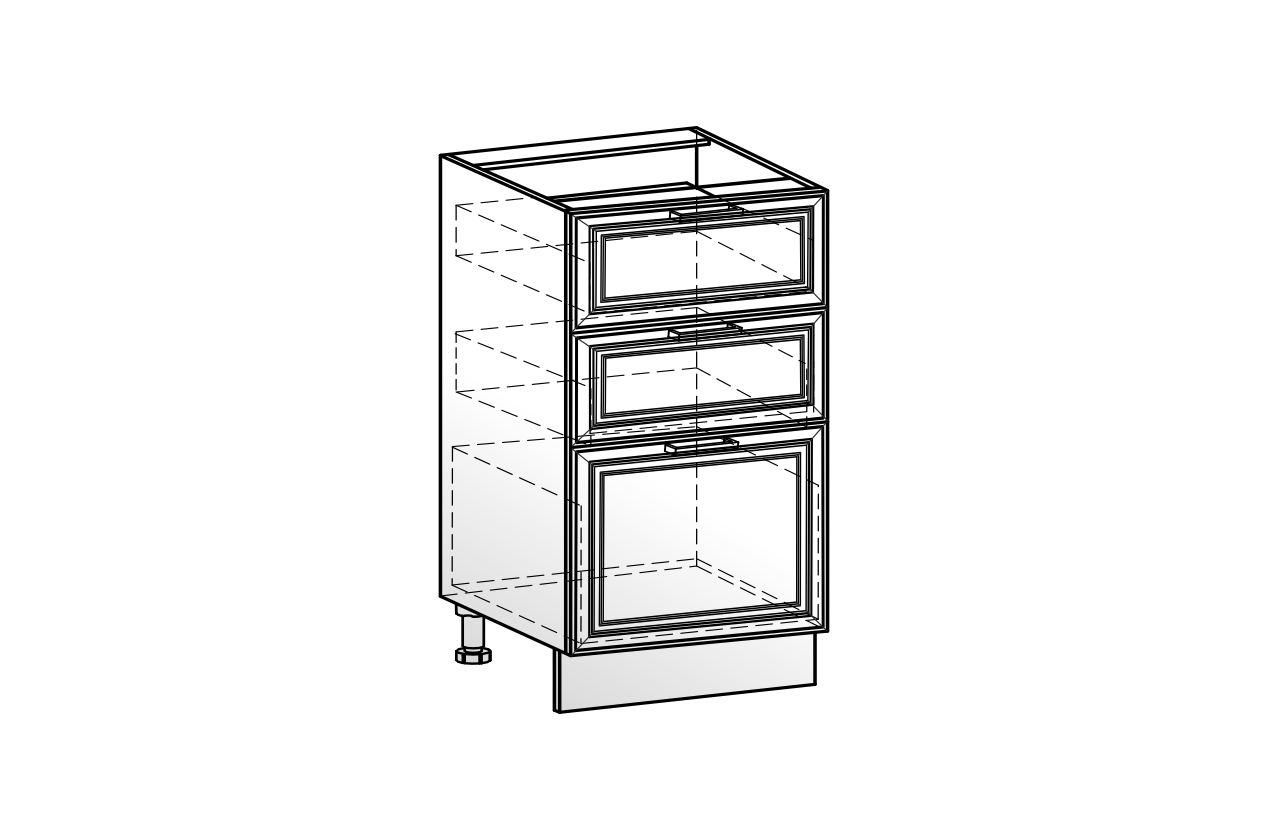 Атланта Шкаф рабочий L400 B500 Слим (3 ящ.) (эмаль) белый/белый глянец патина золото из каталога Атланта купить в Ижевске в магазине мебели онлайн Мебельсон по цене 14 280 ₽