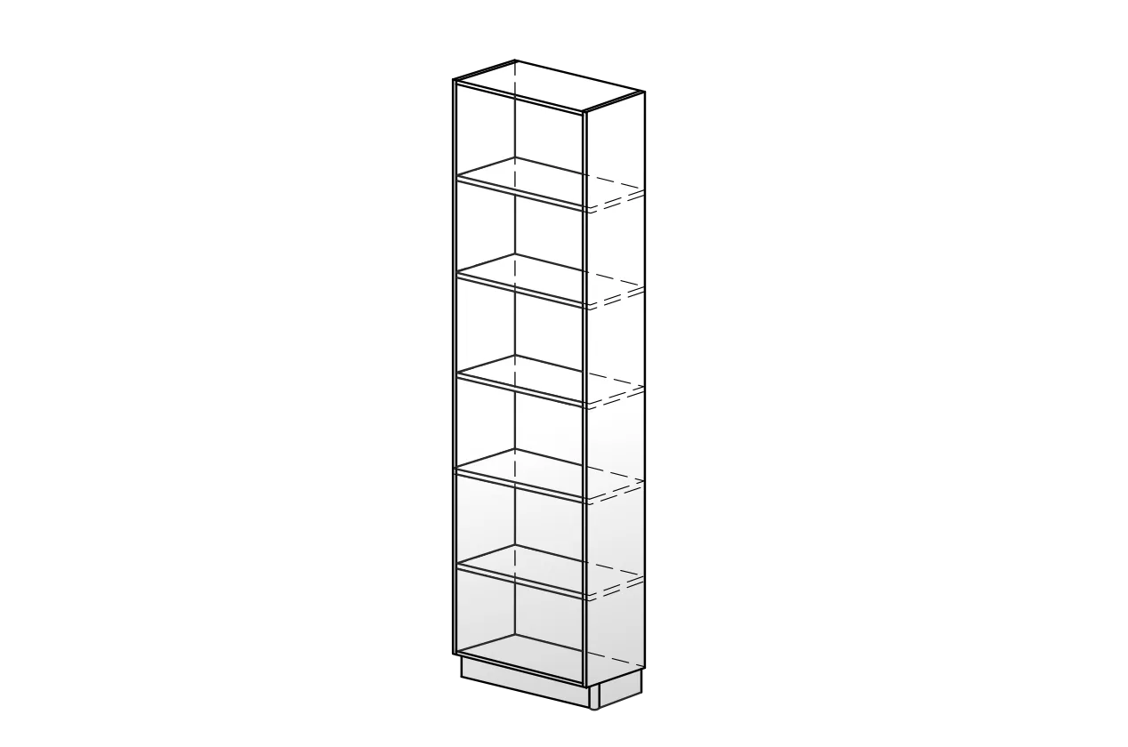 Этот стеллаж специально разработан для установки на торце пенала, что позволяет эффективно использовать каждый сантиметркухни. Он предоставляет удобное место для хранения книг, аксессуаров и других мелочей, помогая поддерживать порядок и организованность в вашем доме.