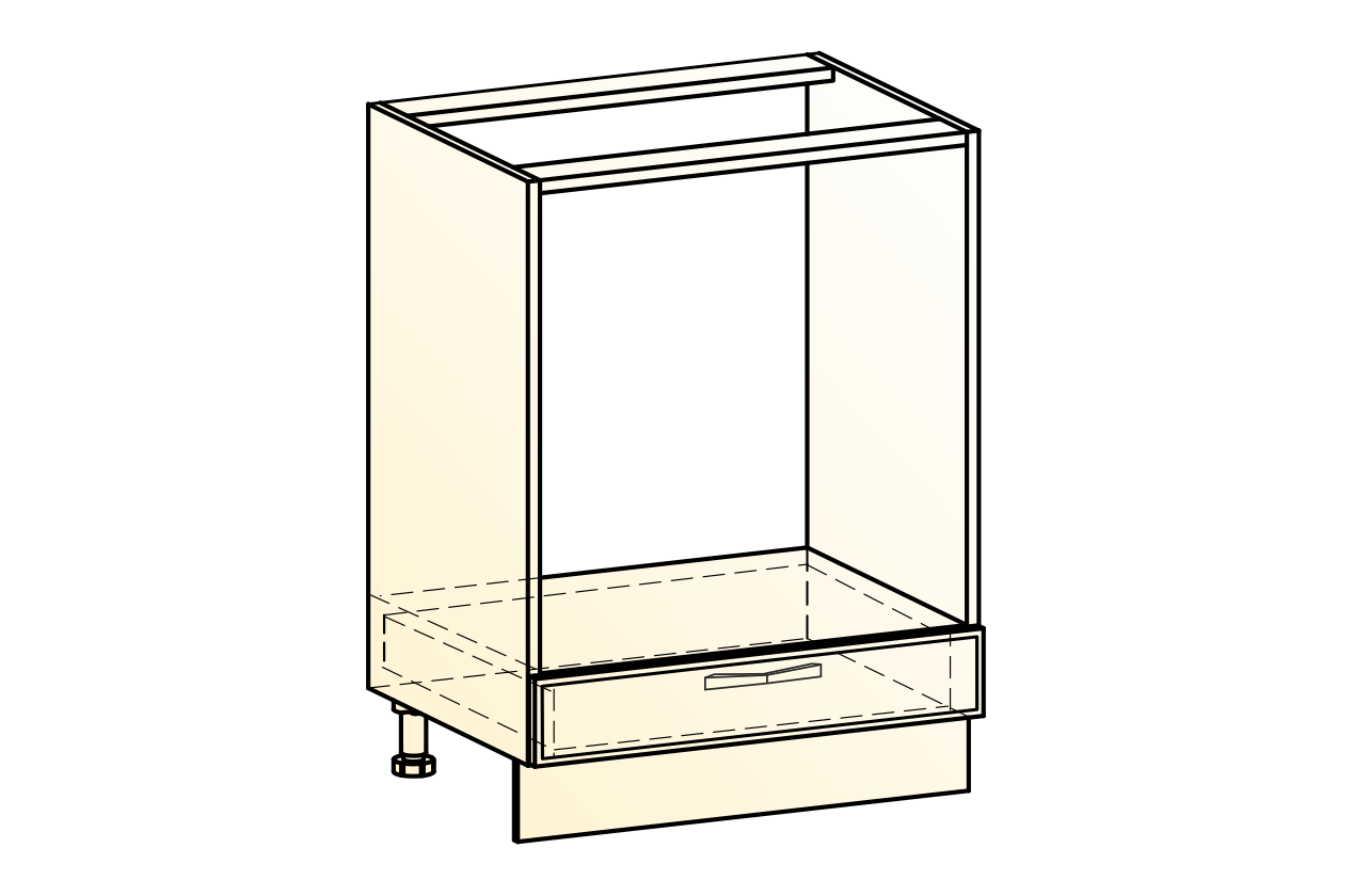 Монако Шкаф рабочий под духовку L600 (1 ящ.) (белый/айвори матовый)