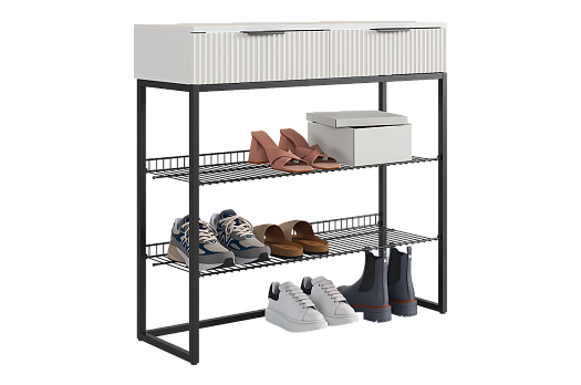 Обувница Классная 1 (белое дерево/белый матовый/черный муар)