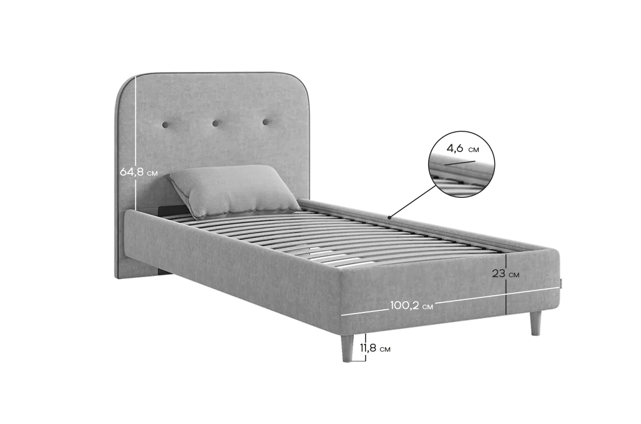 Кровать с основанием Лео 90х200 см графит (велюр)/галька (велюр) из каталога Детские кровати купить в Ижевске в магазине мебели онлайн Мебельсон по цене 22 290 ₽