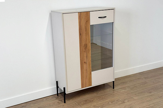 Доминика Комод (со стеклом) кашемир/дуб крафт золотой из каталога Комоды купить в Ижевске в магазине мебели онлайн Мебельсон по цене 14 090 ₽