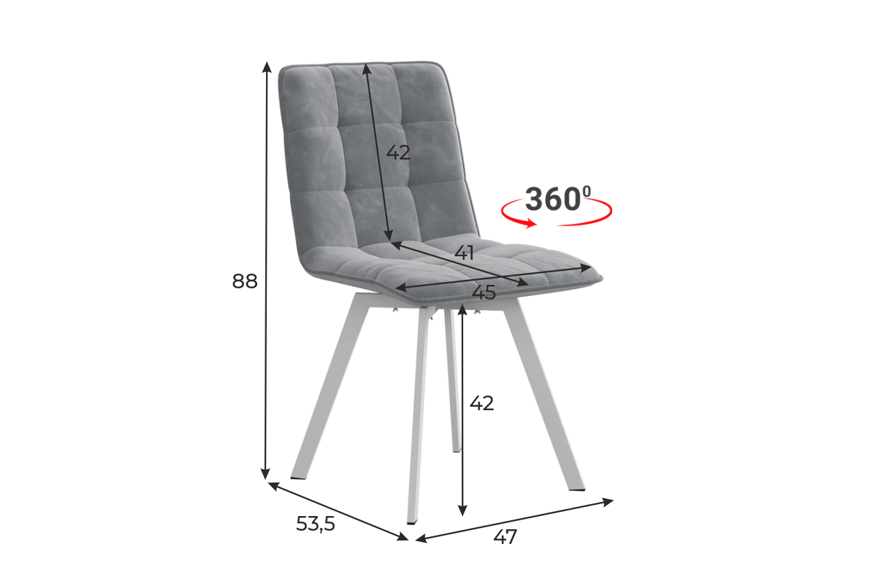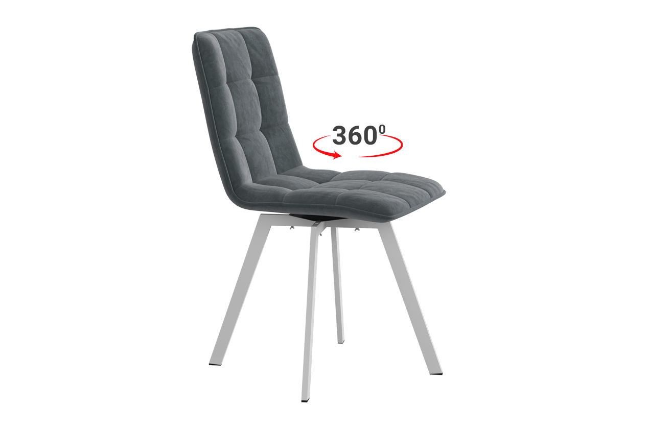 «Марсель» – современный стул выполнен в самых актуальных цветах. Удобный стул с высокой спинкой, мягким наполнителем и обивкой из антивандального велюра оценят практичные хозяйки. Стул с комфортной посадкой и компактными размерами актуален как на кухне, так и рабочем кабинете или детской комнате. Наличие поворотной площадки дает возможность вращать сиденье на 360 градусов.