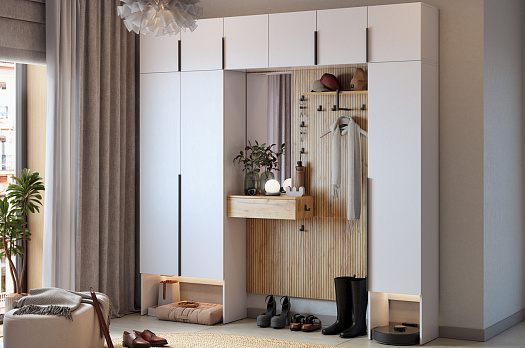 Крючки предоставляют удобное место для хранения верхней одежды, сумок или аксессуаров. Держатель для плечиков позволяет организовать хранение одежды, сохраняя ее в идеальном состоянии. Полка служит дополнительным пространством для хранения головных уборов.