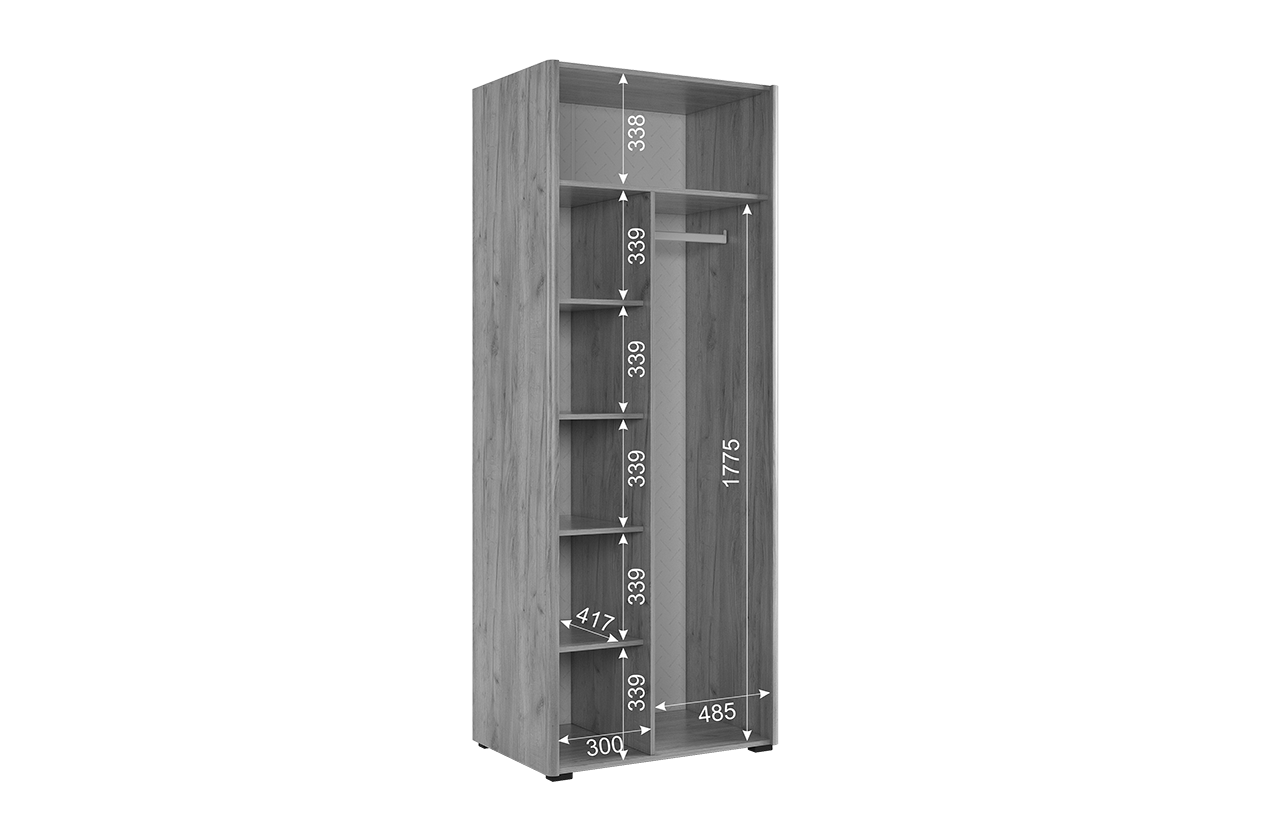 Компактный, но вместительный шкаф имеет полки и штангу для одежды, а полукруглые, обтекаемые углы обеспечат безопасность и комфорт.