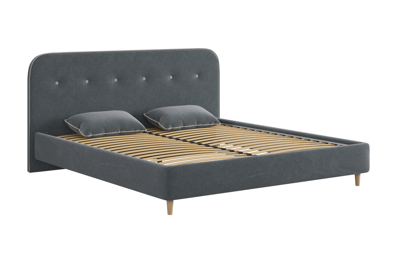 Кровать с основанием Лео 180х200 см графит (велюр)/галька (велюр) из каталога Двуспальные кровати купить в Ижевске в магазине мебели онлайн Мебельсон по цене 33 590 ₽