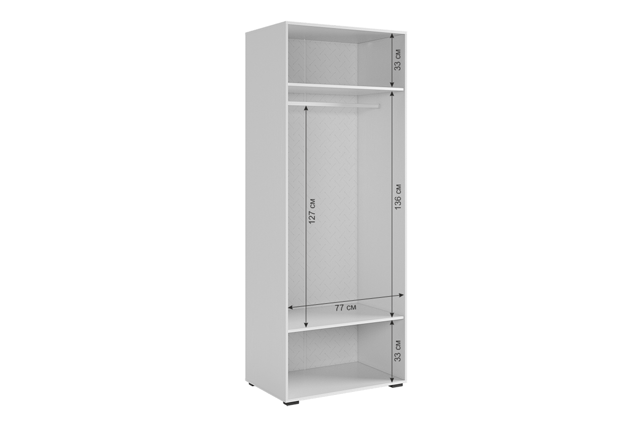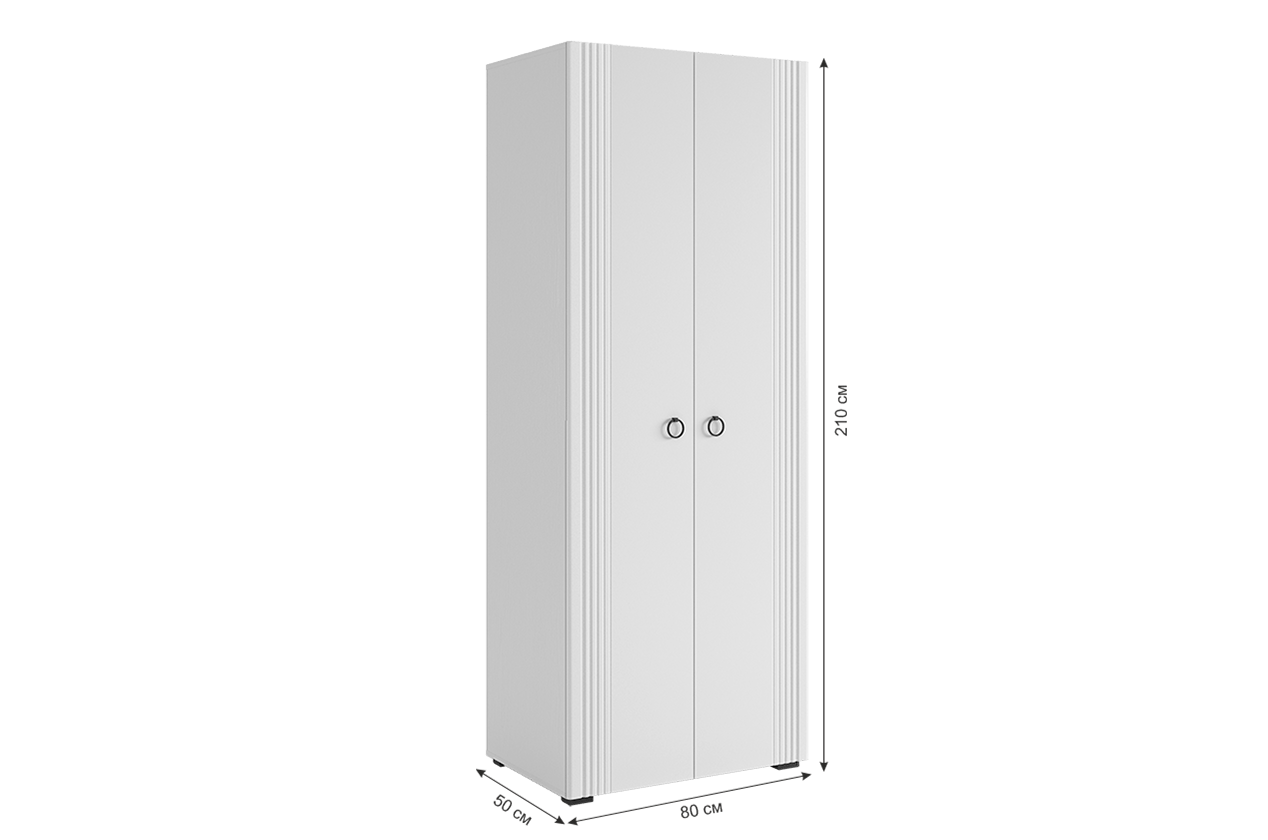 Что делает этот шкаф особенным? Его корпус изготовлен из лдсп белого дерева, что придает ему легкость и свежий вид. Фасады, выполненные из мдф и облицованные пленкой пвх белого матового цвета, добавляют шкафу элегантности. Уникальной особенностью дизайна являются вертикальные полосы на фасаде, созданные с помощью фрезеровки. Петли с доводчиком гарантируют бесшумное закрывание фасадов, залог вашего комфорта. Удобные металлические ручки облегчают открывание и закрывание шкафа, а штанга для одежды и полки дополнительно обеспечивают удобное размещение и организацию внутреннего пространства. Ножка пластиковая черного цвета дополняет общую композицию, а ее высота в 20мм придает шкафу легкость и стабильность.