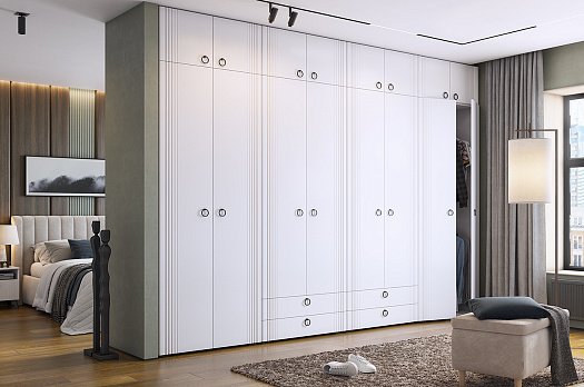Что делает этот шкаф особенным? Его корпус изготовлен из лдсп белого дерева, что придает ему легкость и свежий вид. Фасады, выполненные из мдф и облицованные пленкой пвх белого матового цвета, добавляют шкафу элегантности. Уникальной особенностью дизайна являются вертикальные полосы на фасаде, созданные с помощью фрезеровки. Петли с доводчиком гарантируют бесшумное закрывание фасадов, залог вашего комфорта. Удобные металлические ручки облегчают открывание и закрывание шкафа, а штанга для одежды и полки дополнительно обеспечивают удобное размещение и организацию внутреннего пространства. Ножка пластиковая черного цвета дополняет общую композицию, а ее высота в 20мм придает шкафу легкость и стабильность.