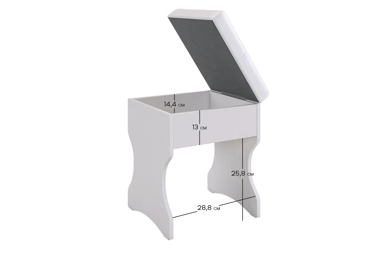 Виктория-1 - это не просто Пуф. Это уникальное сочетание удобства и функциональности, где каждый элемент продуман до мелочей. Съемное сиденье скрывает нишу для хранения, а скругленные края гарантируют безопасность в использовании.