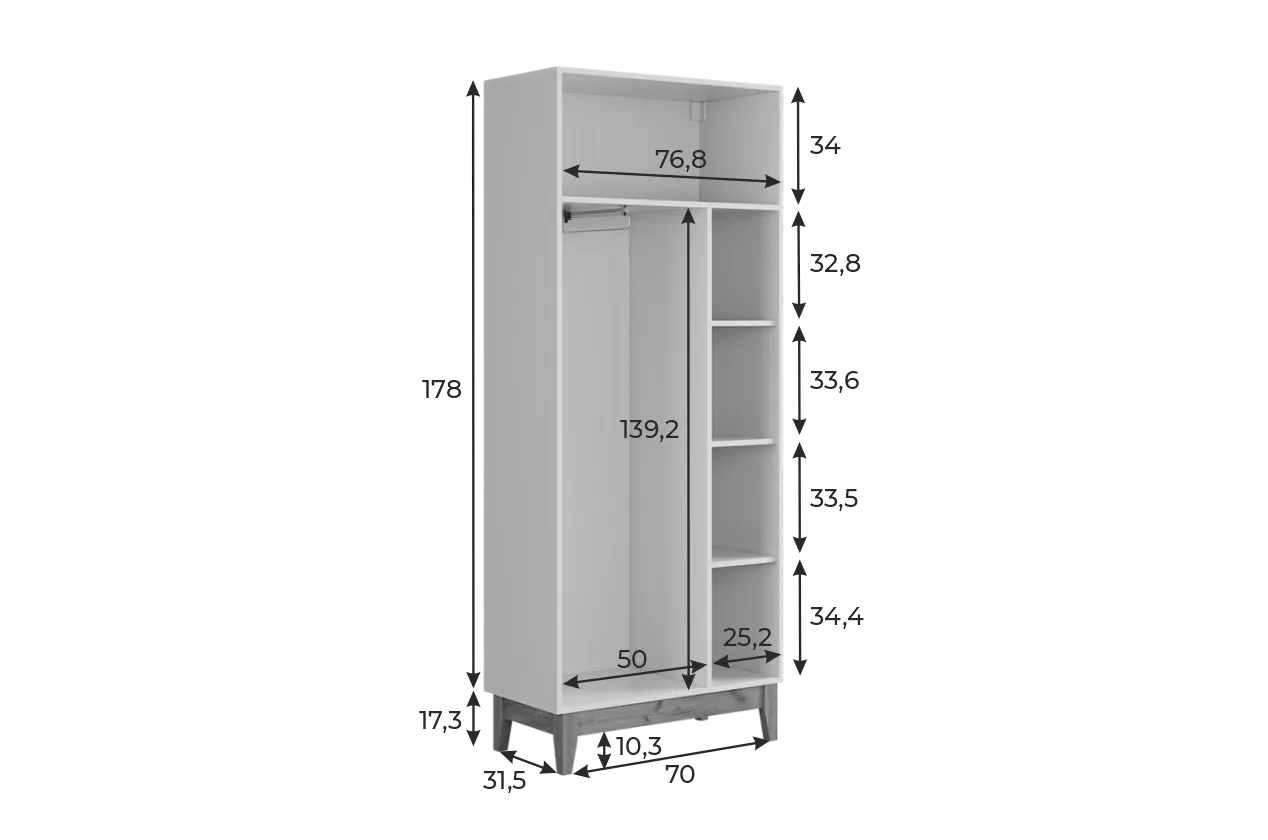 Шкаф двухдверный Хюгге – это стильное и практичное решение для хранения одежды и аксессуаров в скандинавском стиле. Он идеально подойдёт для гостиной, спальни или прихожей, где важна вместительность и эстетика.