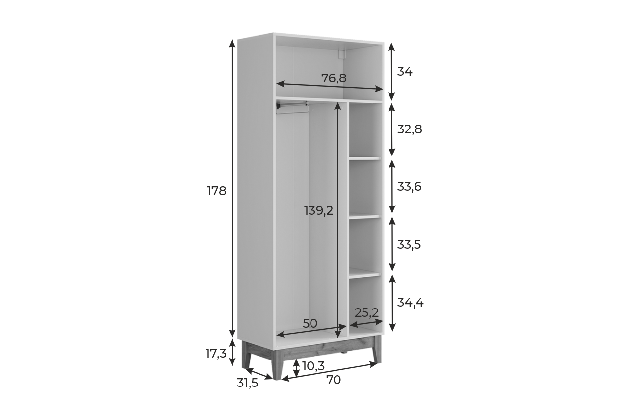 Шкаф двухдверный Хюгге – это стильное и практичное решение для хранения одежды и аксессуаров в скандинавском стиле. Он идеально подойдёт для гостиной, спальни или прихожей, где важна вместительность и эстетика.