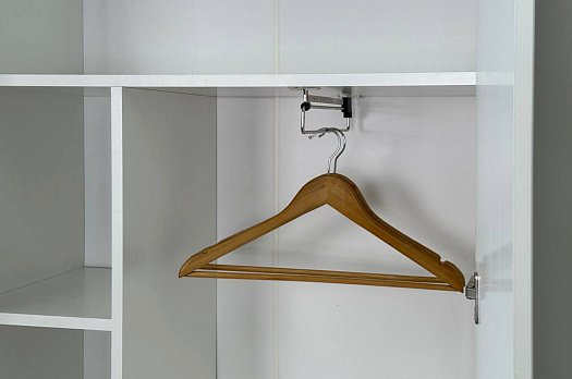 - Отделение с выдвижной штангой подойдёт для хрангения одежды на плечиках;