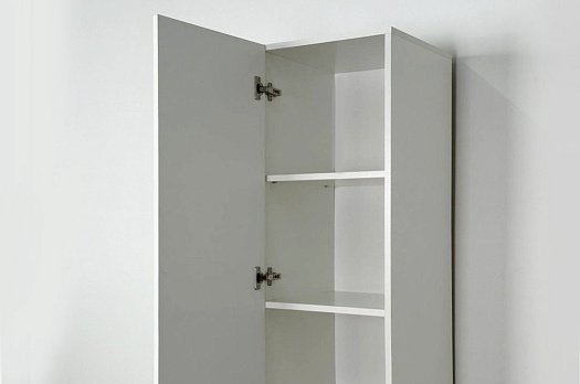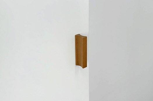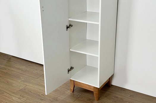Корпус шкафа выполнен из ЛДСП в цвете белое дерево, что придаёт ему светлый и уютный вид. Фасад – из МДФ с фрезеровкой, покрытый матовой белой плёнкой ПВХ, что подчёркивает натуральность текстуры и создаёт ощущение лаконичности.