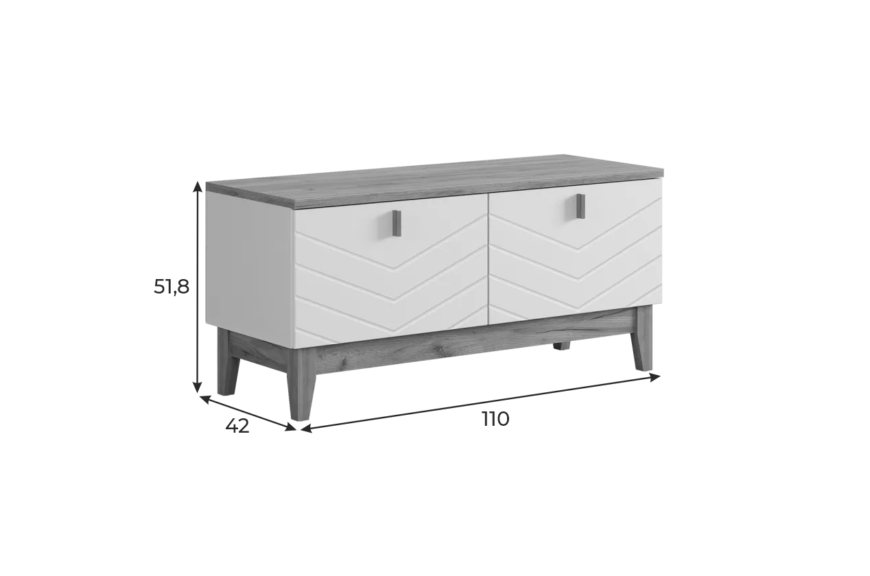 Корпус тумбы выполнен из ЛДСП в цвете белое дерево, что придаёт ей светлый и уютный вид. Фасады – из МДФ с фрезеровкой, покрытые матовой белой плёнкой ПВХ, что подчёркивает натуральность текстуры и создаёт ощущение лаконичности.