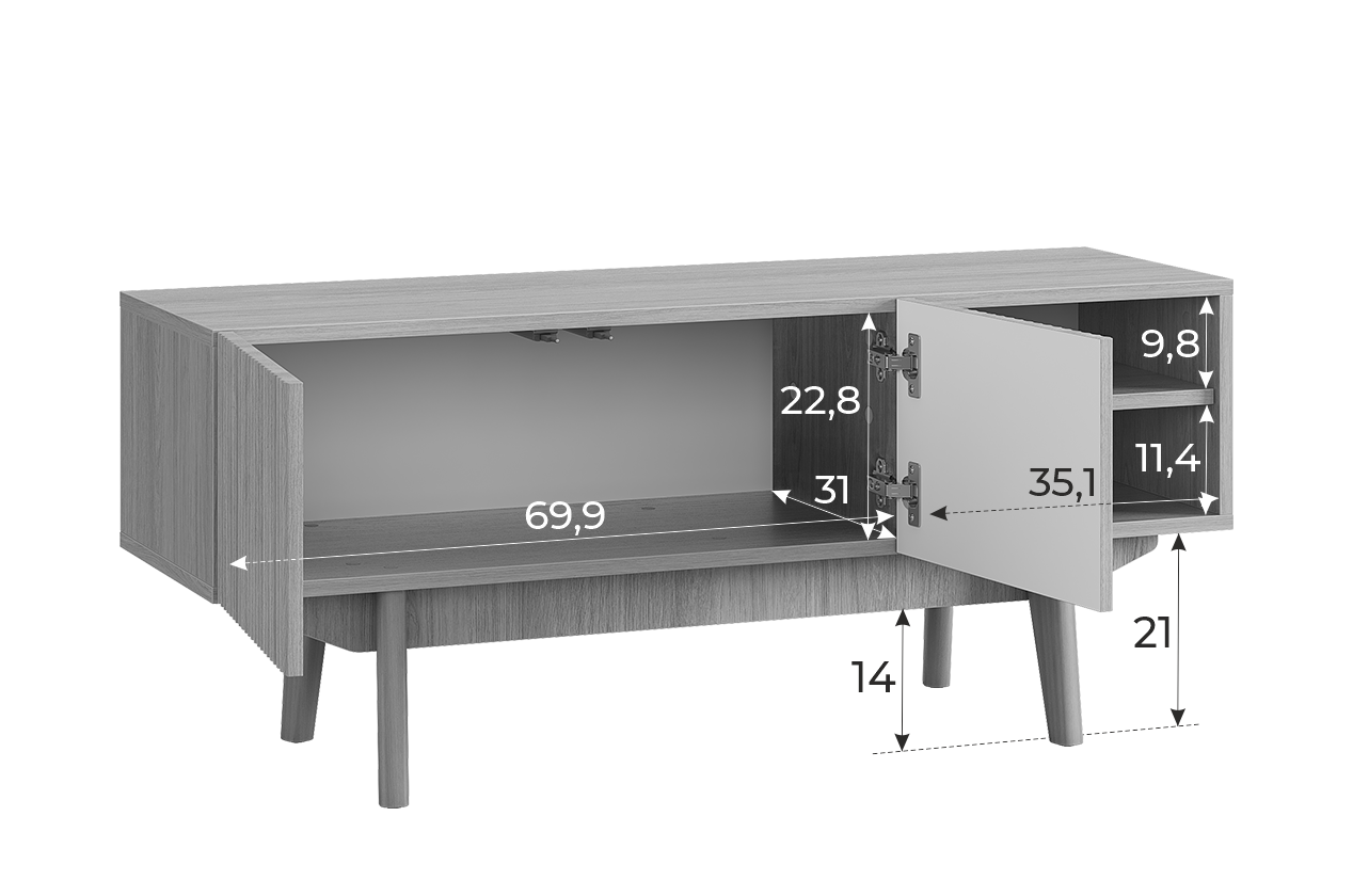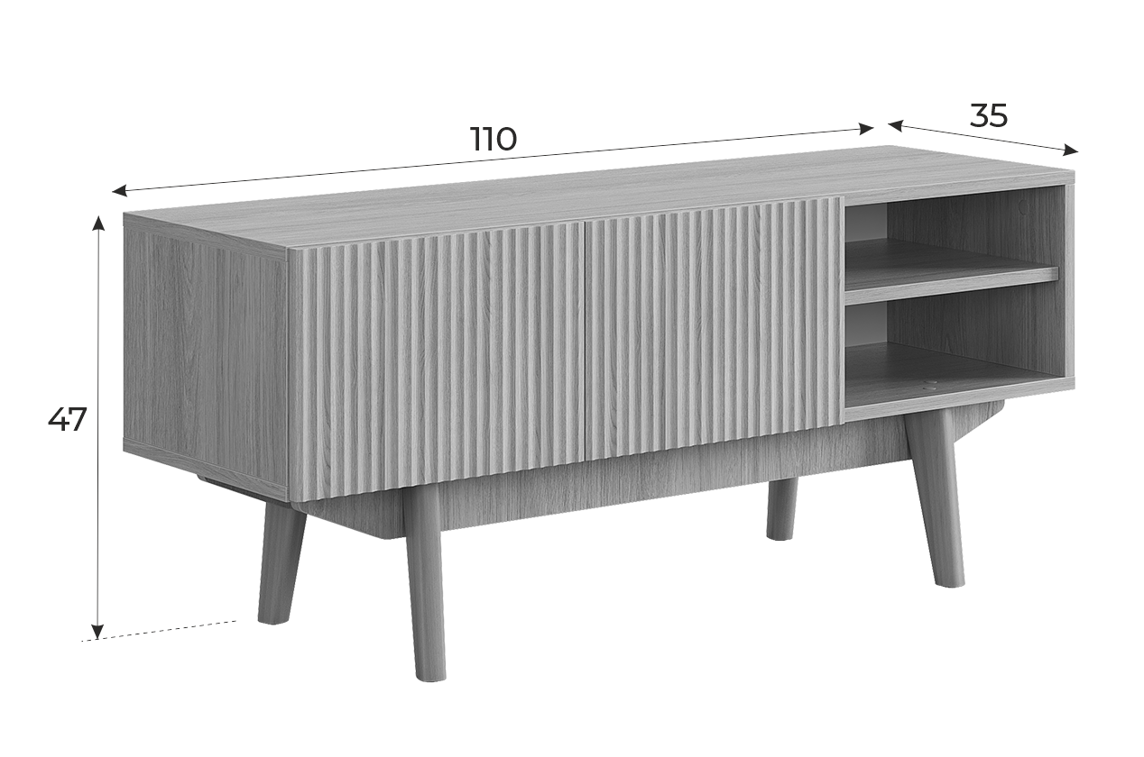 Высокие опоры из массива дерева не только дополняют дизайн тумбы, но и позволяют роботу-пылесосу свободно проходить под ней. Тумба «Мира» 110 станет отличным местом для размещения телевизора и хранения медиатехники.